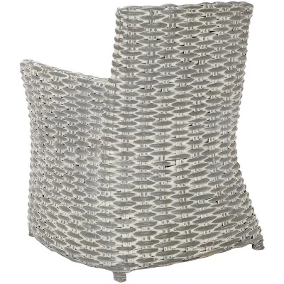 Safavieh reinterprets the classic wicker chair with the modern lines of the Cabana Arm Chair. The grey wash woven rattan lends a new fashion look to the living room, bedroom, or den, while a solid beige cotton cushion recalls all of wicker’s natural charm. Care Instructions: To prevent overall soiling, frequent vacuuming or light brushing is recommended. Cushions and pillows should be turned on a weekly basis. Down filled cushions should be brushed rather than vacuumed. Spot clean, using a mild water free solvent or dry cleaning product. Only a professional cleaner should undertake a complete overall cleaning. The use of steam or water based cleaners may cause excessive shrinking or staining.