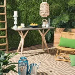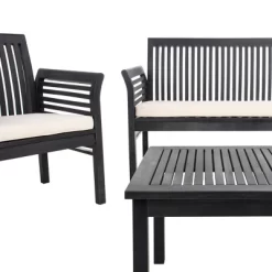 Ozark 4pc Acacia Wood Patio Conversation Set – Natural – Safavieh