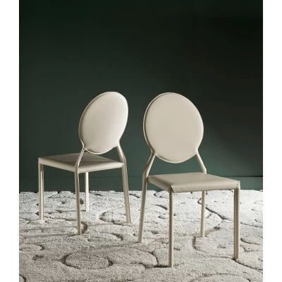Joie de vivre. Parisian cool instantly heats up the kitchen with this set of two dining side chairs inspired by the infamous silhouettes of design legend Philippe Starck. Comes in bonded leather or PVC upholstered options, they are stylish, easy-care and magnifique. Care Instructions: Although leather is one of the most durable upholstery materials, proper care is vital to maintain its appearance and performance. Dust weekly using a soft, clean cloth slightly dampened with distilled water. Blot spills immediately with a soft, clean absorbent dry cloth.